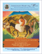 Dear Families of Immaculate Heart of Mary: Today’s readings center on the suffering of God’s Beloved foretold in Isaiah, given voice in the psalms, and theologized in Paul’s letter to the Philippians. God the Son, coequal with the Father and worthy of all praise, chooses out of love to descend to our humanity, living, suffering, and even dying as one of us. The arc of Palm Sunday begins with the triumphant entry of Jesus into Jerusalem in the first gospel reading, but….
