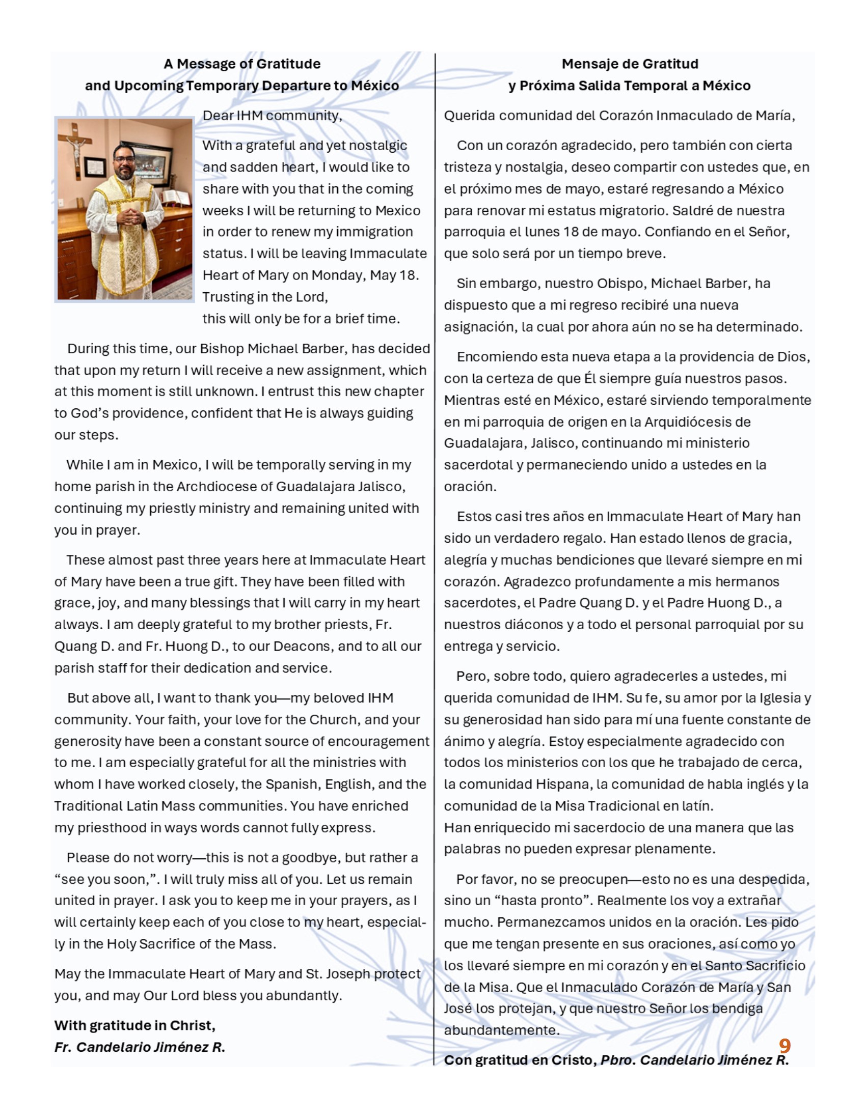 Are you new to Immaculate Heart of Mary?We Welcome you! We are a very vibrant and active parish in Brentwood whose mission is, “With Mary, we seek to know Christ better and to make him better known through our words and actions.” We do this in a variety of ways through our several sacramental prep programs, social outreach, as well as our active ministries, Bible studies, and an energetic youth program. We also LOVE new parishioners. Even though we are unable at this time to gather for ministry meetings many of the ministries are finding ways to stay connected through Zoom.If you are not yet registered, please call the parish office at 925-634-4154 and ask for Ana. She will be happy to mail you a registration form or you can go on line and register at: ihmchurch@ihmbrentwood.com.Bishop’s AppealThank you for your generosity and support in the past to the “Bishop’s Appeal”. If you are financially able, please thoughtfully and prayerfully consider joining our efforts this year by making a gift or pledge of financial support. Jesus Christ promised us at His Ascension: “I will be with you all days until the end of the ages.” If Christ has helped you and your family, if He has been generous to you, will you consider sharing some of the blessings you have received with Christ and His Church? Although we call it “The Bishop’s Appeal,” it is really Christ’s appeal. Thank you in advance for your love and generosity. No gift is too small.Gracias por su generosidad y apoyo en el pasado al "Apelacion del Obispo". Si tiene la posibilidad de hacerlo, por fav or, considere en oración unirse a nuestros esfuerzos este año haciendo un regalo o promesa de apoyo financiero. Jesucristo nos prometió en su Ascensión: "Estaré con vosotros todos los días hasta el fin de los tiempos". Si Cristo le ha ayudado a usted y a su familia, si ha sido generoso con usted, ¿consideraría compartir algunas de las bendiciones que ha recibido con Cristo y su Iglesia? Aunque lo llamamos "Apelacion del Obispo", en realidad es la llamada de Cristo. Gracias de antemano por su amor y generosidad. No importa el tamano de la donacion.Magnificat, a Ministry for Catholic Womenis excited to invite you to attend our upcoming Prayer MealSaturday May 9, 2026, 9:30 - 12:30Cathedral of Christ the Light2121 Harrison St. Oakland,CAPlease join us as we welcome Paul J. Kim as our speaker. Paul is a popular speaker, comedian, influencer and marriage and family counselor. He is known for sharing his faith and family on Instagram, but this past December Paul united people around the world in prayer as his family journeyed through the sudden illness, death and life in Christ of his five year old son, Micah Joseph. Paul has a compelling testimony in his belief that our Mother Mary continues to wrap her mantle around his family as they navigate their new life while Micah is having “the best playdate ever” with Jesus.$20 online registration by 05/05 https://magnificat-ministry.net/chapters/ca-walnut-creek/For information Michelle Heckle 925 818-3111 College Level Application FormPDF FormatWORD FormatHigh School Level Application FormPDF FormatWORD FormatKnights of Columbus/Italian Catholic FederationPANCAKE BREAKFASTCome visit with your fellow parishioners and welcome our new parishioners at the pancake breakfast on the first Sunday of each month. Hours are 8:15am to 12:00pm.