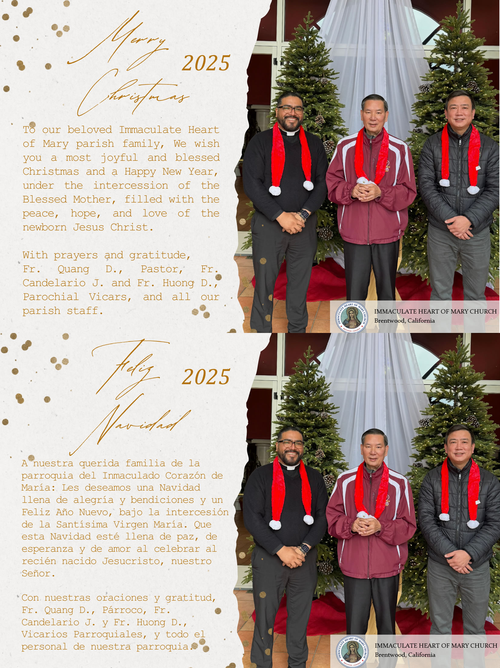 Emergency Preparedness 2025 Guidelines [Read More] Brentwood Police Department will be invited on site to issue citations to those parked illegally at IHM. [Read More] Hours of Adoration are on Thursdays from 8:30AM to 6:00PM. On Fridays, Adoration begins at 8:30am and Continues until 7:30am on Saturday. The Oakland Diocese warns the public of a phishing scam involving emails… [Read More] Click here to read more parish news and announcements