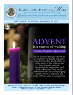 Dear Families of Immaculate Heart of Mary: As we enter into Advent once again, we are not preparing for the coming of the Christ Child; that already happened more than two thousand years ago. Rather, in Advent, we break our normal routine and move into heightened alert to perceive more intensely the ways in which Emmanuel, God-with-us, is moving us toward that vision of peace and unity that Isaiah so eloquently describes in the first reading. The prophet dreams of how all people stream toward the city of peace….