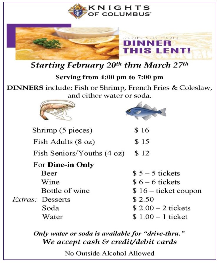 Appreciation for your continued commitment to help our community during the Holidays The needs of our community have been well served thanks to your generous support with the recent distribution of holiday birds to our food pantry on November 21st. In the spirit of the holidays, we will continue to rely on and greatly appreciate your generosity so that we can fulfill the needs of our community during these most trying times. Your support not only funds our Friday food pantry but also provides much needed financial assistance to our Neighbors during the Holidays. May the joy of the Season linger in your hearts all through the New Year! We hope your New Year is indeed very Blessed.For the weekend of March 1, please bring peanut butter and jelly. THANK YOU!For the weekend of March 8, please bring mac and cheese. THANK YOU!+++Para el fin de semana del 1 de marzo, por favor traigan crema de mani con mermelada. GRACIAS!Para el fin de semana del 8 de marzo, por favor traigan macarron y queso. GRACIAS!Women’s Faith Sharing and Bible StudyWomen’s Faith Sharing and Bible Study invites you to join us in our next study"The Bible and the Virgin Mary" by St. Paul Center.The Bible and the Virgin Mary, part of the St. Paul Center’s Journey Through Scripture series, unveils the mystery of Our Lady that is woven into the fabric of Sacred Scripture. Twelve visually stunning lessons convey the beauty of the doctrine and devotions surrounding Mary, bringing them to life in a powerful, new way.We meet weekly on Thursdays from 10am-11:30. Our first session starts on March 19, and we meet in the library.Optional study materials may be purchased at: https://stpaulcenter.com/bible-studies/the-bible-and-the-virgin-maryFor questions contact Linda Scott: Linda222572@gmail.com-Hours of Adoration/Horas de AdoraciónHours of Adoration are on Thursdays from 8:30AM to 6:00PM. On Fridays, Adoration begins at 8:30am and Continues until 7:30am on Saturday. Please pray for increased vocations. Horas de Adoración son los jueves de 8:30AM a 6:00PM. Adoración los viernes empieza a las 8:30AM y continúa hasta el sábado a las 7:30AM. Por favor recen para que aumenten las vocaciones.Promise: I promise to the soul that visits Me frequently in this Sacrament of Love, that I will receive it affectionately together with all the Blessed and the Angels in Heaven, and that each of its visits will be written down in the Book of its life and I will grant to it.Attention: / Atención:If you or your children are sick, please stay home. Remember we do provide live streaming of Mass for those who are home bound and cannot come to Mass at 9am English on Sundays and 10:45 am Spanish. It is ok to stay home if someone in your family is sick.******Si ud o sus hijos están enfermos favor de quedarse en casa. Recuerde que ofrecemos transmisión en vivo de la misa para aquellos que están confinados en sus casas y no pueden asistir a misa los domingos a las 9am en Ingles y a las 10:45am en Español. Está bien quedarse en casa si alguien de su familia esta enfermo.