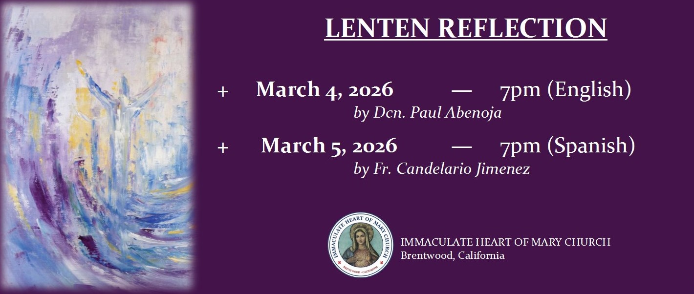 DESAYUNO DE PANQUECASVengán a visitar con sus amigos parroquianos y darles la bienvenida a los nuevos parroquianos al desayuno de pancakes el primer Domingo de cada mes. El próximo domingo el desayuno será patrocinado por el Ministerio de St. Vincent De Paul. Horario del desayuno es de 8:15am a 12:00pmAltar Server Invitation–No Experience NecessaryThe Spanish and English Altar Server Ministries are accepting new applicants. To be eligible, your family must be registered in the parish, you must have made First Communion, and have a willingness to serve our Lord at the altar. If you are interested, please contact Tim Guernsey at tguernsey@sbcglobal.net, or call 925-457-4519February 27 -Legion of MariaMarch 6 - Movimiento Familiar CristianoMarch 13 - Divine MercyMarch 20 - Fil-AmMarch 27 - Live Stations - 6PM Guadalupano's / C.O.V. YouthPlease park correctly / Por favor, estacione correctamenteThank you for not parking in red zones. However, we would appreciate if you could be sure to park straight in the parking stalls. We have noticed several open parking spaces because cars are parked at an angle or over the lines. If everyone would be better at parking straight there would be more available parking spaces. Again thank you for your cooperation.Gracias por no estacionar en las zonas rojas. Sin embargo, le agradeceríamos que se asegure de estacionar derecho en los puestos de estacionamiento. Hemos notado varios espacios de estacionamiento vacios porque los autos están mal estacionados, en angulo o sobre la linea blanca. Si todos pudieran estacionar derechos habrian mas puestos libres para estacionar. De nuevo gracias por su cooperacion.Catechesis CornerThe Catechesis Corner is a monthly newsletter which highlights aspects of the faith. You can find the latest edition of the Catechesis Corner in the vestibule. You can also sign up to receive it once monthly via Flocknote. Go to Flocknote and join the IHM Catechesis Corner group or send your request to Deanna at d.betschart24@outlook.com.El Catechesis Corner es un boletín mensual que destaca aspectos de la fe. En el vestíbulo se encuentra la última edición del Catechesis Corner. También pueden registrarse para recibirlo una vez al mes a través de Flocknote. Vaya a Flocknote y únase al grupo de IHM Catechesis Corner o envíe su solicitud a Deanna al d.betschart24@outlook.com.Youth CornerS.A.L.T. LeadershipApplications for S.A.L.T. teens (Students and Adults Leading Together) are now open. This team of teens help with various events throughout the year, like leading small groups, assisting at Mass in different capacities, retreat leaders, EDGE program and other awesome events. Please email Julie (ihmyouthbrentwood@ gmail.com) to get an application. A great way to get involved, meet more people, celebrate your faith while having fun.SAINT(s) - Real Life Role Models:Lets hear it for a few of God's amazing Holy heroes: St. Maria Goretti (Patroness of Youth and Young Women) , St. Benedict (Patron of Students), St. Kateri( Covert to the faith at age 19) and St. Ann and St. Joachim (Grandparents to Jesus). Check out these amazing role models. Some are young - some are older. As you check into their stories you may a find a new heavenly friend to accompany you on your journey. One website to look up Saints is atholiconline.org/saints/Youth Ministry Invites You!!We welcome all teens grades 6-12 to join our Edge Middle School Ministry, Tuesdays 4:15-5:15pm, or our High School Youth Ministry program, Thursdays 6:30-8pm. Enrollment is taken year around for these groups! We participate in Bible studies, faith talks, prayer experiences, games, retreats, snacks and social events. Please email Julie Figueroa at ihmyouthbrentwood@gmail.com for more information. All are welcome!